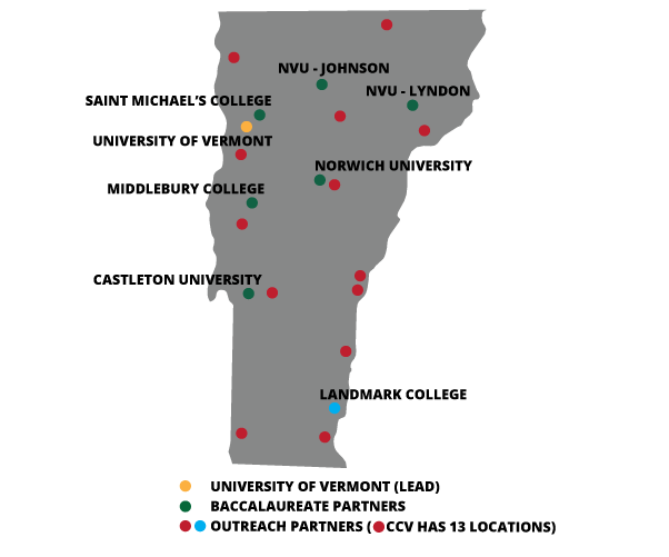The VBRN, formerly VGN, is in its fourth phase of funding with a five-year $19.4 million award from the INBRE program of the NIGMS at the National Institutes of Health. The mission of VBRN is to build human and physical infrastructure in Vermont for biomedical research. At the lead institution, the University of Vermont, we have developed state-of-the-art facilities for Proteomics and Bioinformatics as well as a Professional Development and Education Core to provide to researchers across Vermont the resources they need to carry out world class research and compete for federal funding. To address workforce development, we build cultures of research by supporting faculty and student research at our Baccalaureate Partner Institutions: Vermont State University (Castleton), Middlebury College, Vermont State University (Lyndon), Vermont State University (Johnson), Vermont State University (Randolph), Norwich University, and Saint Michael’s College. We also work with students in college lab classes throughout Vermont in order to bring cutting edge research resources into their education, including at the Community College of Vermont, Landmark College, and Champlain College.